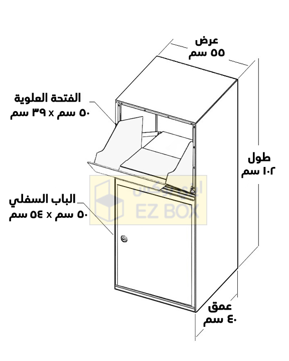تم تصميم مقاسات وأبعاد الصندوق لتتسع لمعظم كراتين وأكياس المواقع الإلكترونية على سبيل المثال (أمازون، أرامكس، نون، آي هيرب).